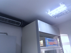 | Upgrade nișă chimică – aport aer proaspat climatizat (încălzit/răcit) filtrat ![]() | Sistem de recirculare a aerului din laborator (sistem tubulatură de ventilație izolată, grile de introducere aer proaspăt/recirculare aer cu lamele fixe din Al vopsit în câmp electrostatic, cutii plenum izolate de introducere/recirculare, clapete reglaj montate pe tubulatura de introducere și de recirculare); automatizare echipament de climatizare inclusiv panou individual de comanda cu afisajUnitate interioara de climatizare tip duct inverter, freon R410A, Qincalzire=18000 BTU/H si Qracire=18000 BTU/H, debit maxim 1.400 mc/h, Dp=70Pa, aport aer proaspat 40%, filtru G4, inclusiv unitate exterioara. |